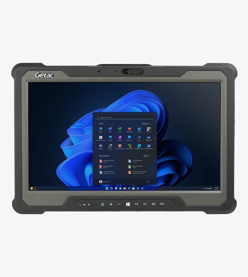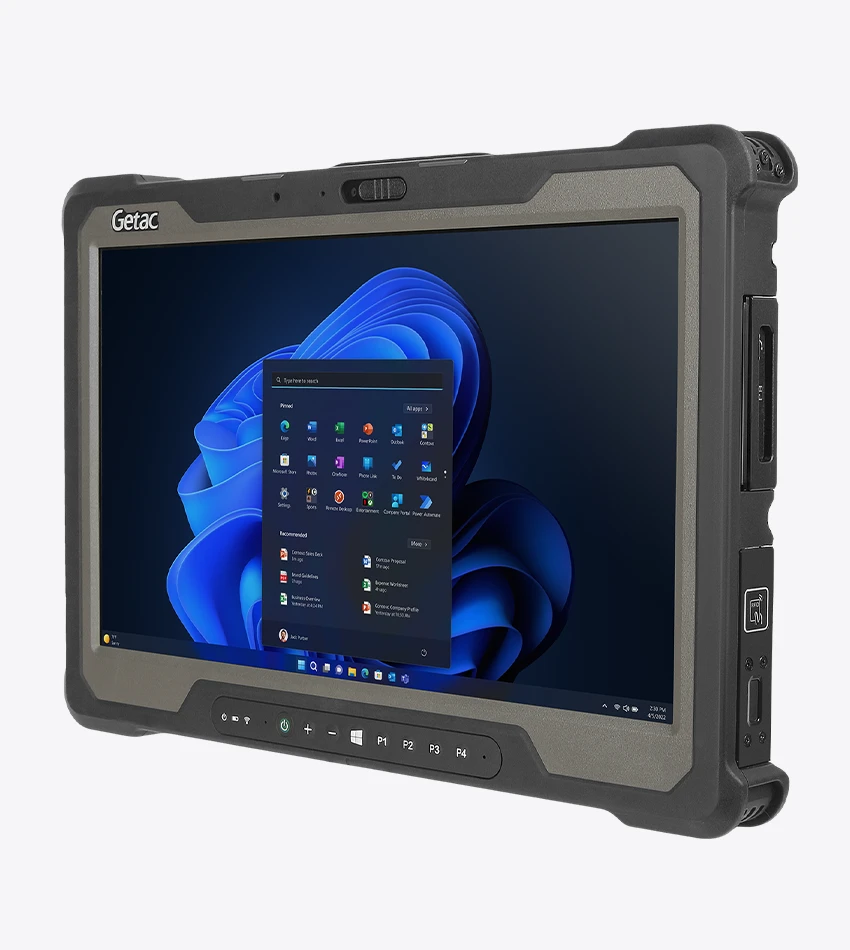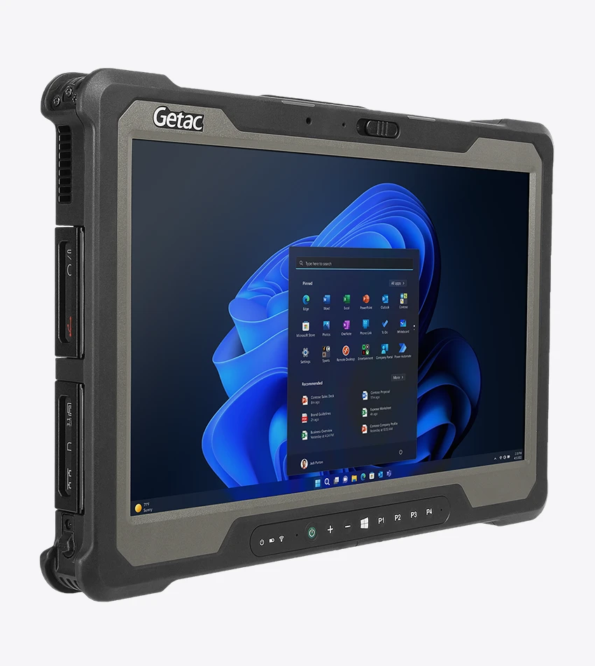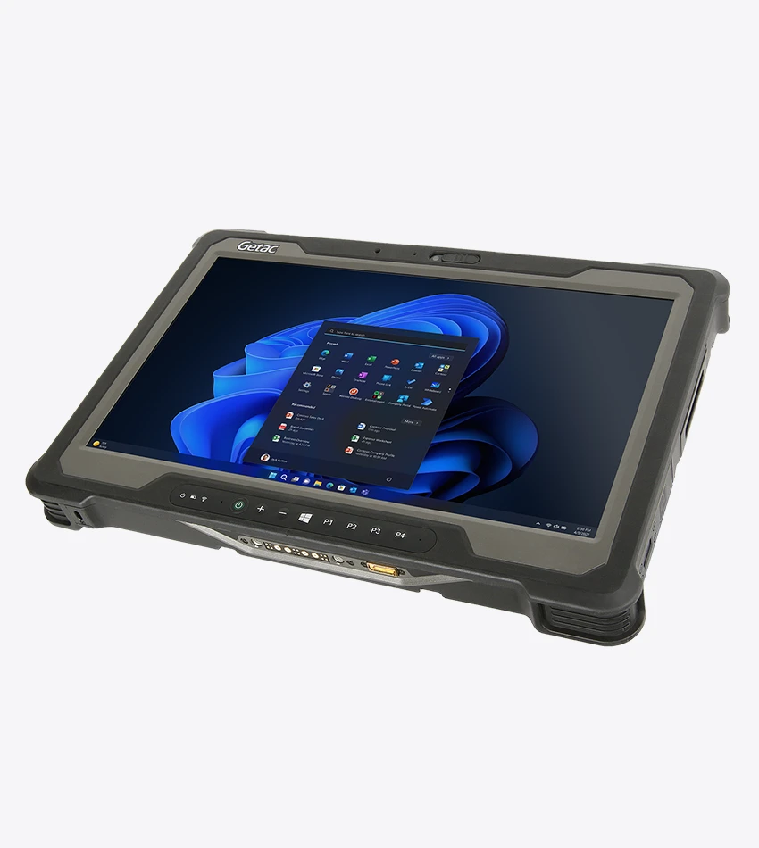 La Tablet industrial A140 de Getac, una tablet rugerizada robusta de 14 pulgadas diseñada para enfrentar condiciones extremas. Con certificación IP65 y estándar MIL-STD 810G, esta tablet profesional robusta ofrece una pantalla táctil capacitiva 16:9 de alta resolución y brillo de 800cd/m2, ampliable a 1.000cd/m2, ideal para el trabajo de campo.